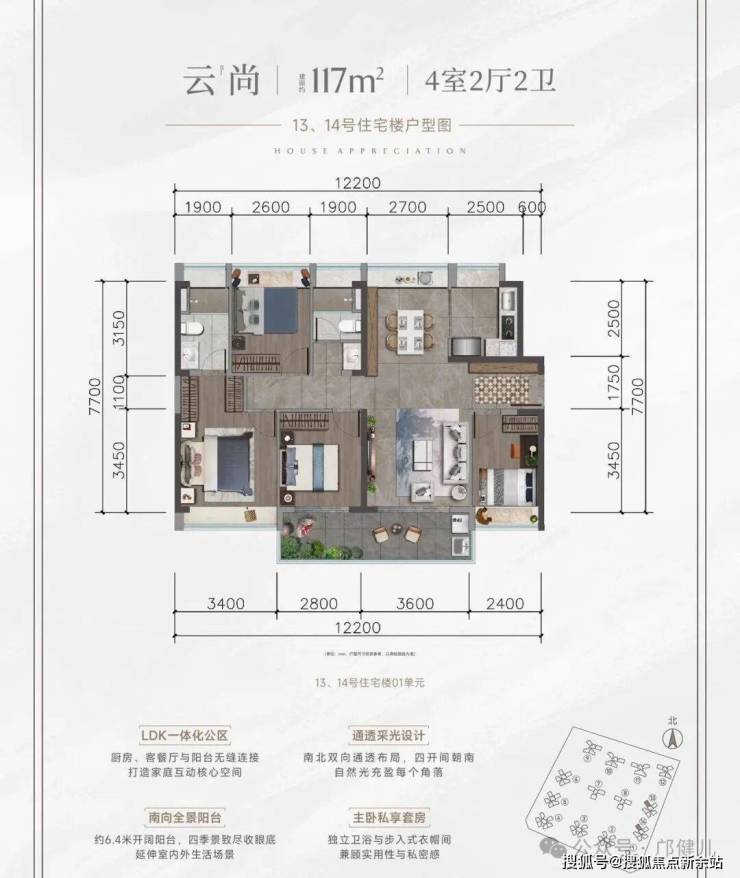 改善细节:大面宽阳台、主卧套房设计、明厨明卫。