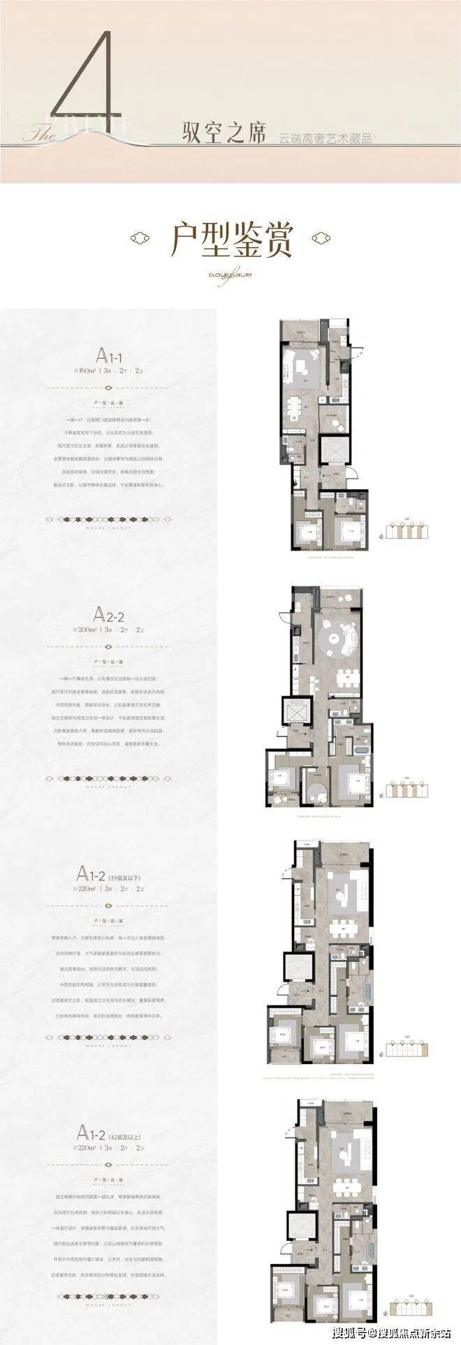A座:建筑面积约160-220㎡2-3房(南北通透,专梯入户)