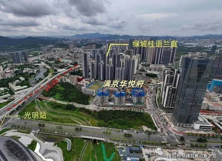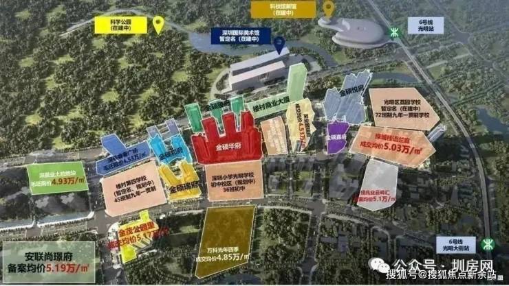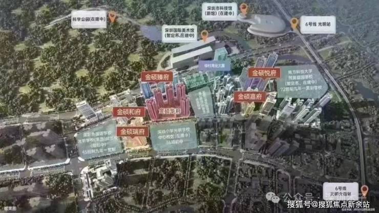 项目直线距离约430米的地铁6号线光明站,通勤龙华、福田无压力。