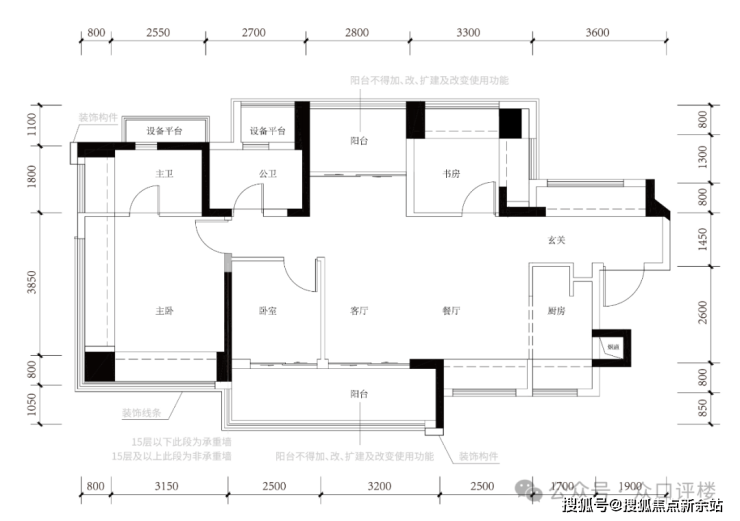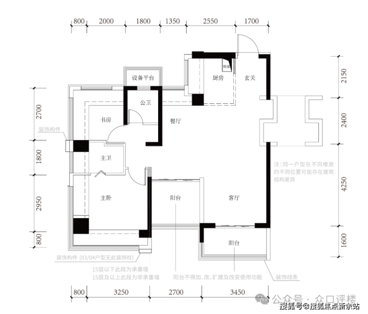 创新型成长户型,适应家庭不同阶段的需求变化,拔墙设柱设计、分户S墙、创新LDKC内外亲子双区等