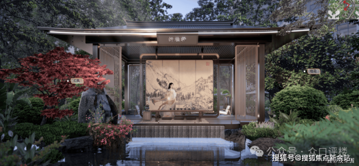 撷取清晖园“水榭、拱桥、奇石、飞瀑、花窗”五大元素,以现代设计语汇重塑岭南意象。