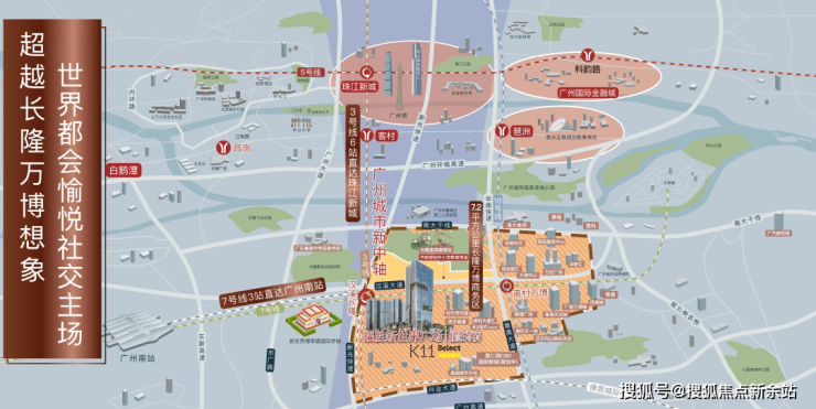 自带K11 Select:广州第二座K11 Select(约8万㎡),2025年三季度开业,定位“多元智能亲子购物乐园”,自然采光+不规则中庭设计,填补万博高端亲子商业空白。