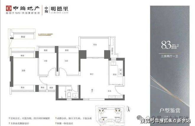 品质美宅:建面约83-113㎡3-4房品智美学住宅,多面宽朝阳,揽清风入怀。