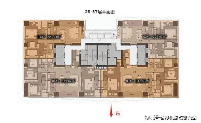 C户型:约223㎡3房2厅3卫:B栋28-52F(高区),东朝向