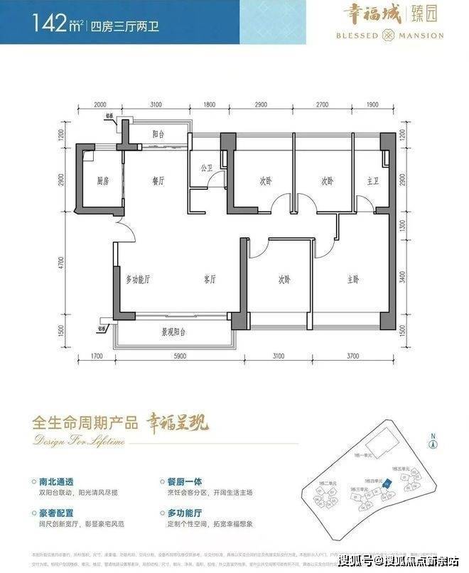 约90%户型朝南,3梯4户/3梯5户/4梯6户的高梯户比!
