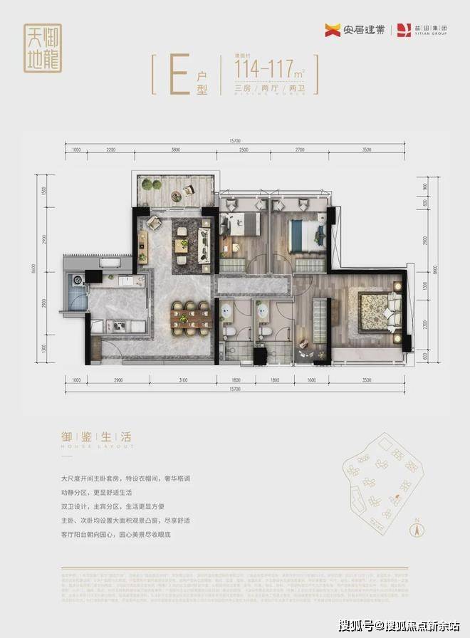 面积:103-116㎡3房3卫197-200㎡4房3卫 公寓124-295㎡