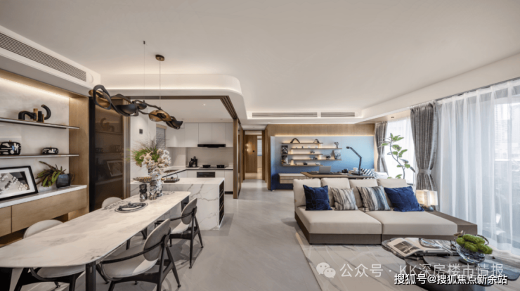 注重质感与尺度升级。LDKB无界方厅、瞰景阳台、独立书房、社交U型厨房以及主卧奢配阳台,空间大有所享。