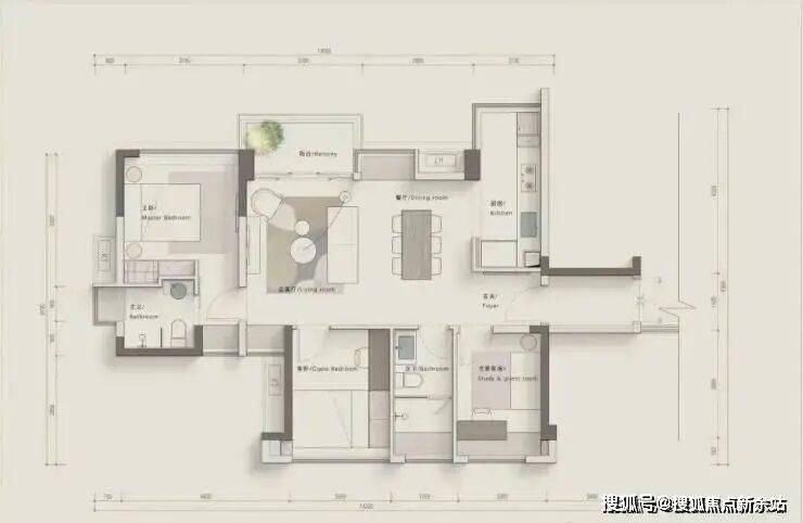 A1户型:89㎡横厅,使用率接近百分之百,相当于市场105平的户型