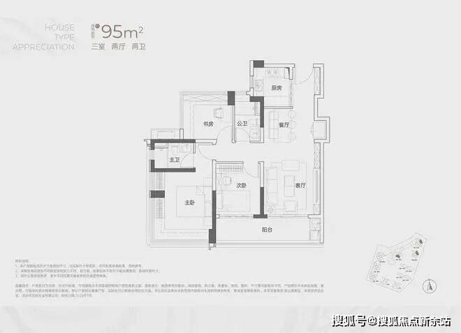 该户型为西南向或东南向,竖庭设计,南北通透,阳台也是连通到次卧对出,比较宽敞。户型动线也比较清晰,动静分区合理,特别是两个卫生间紧靠在一块。
