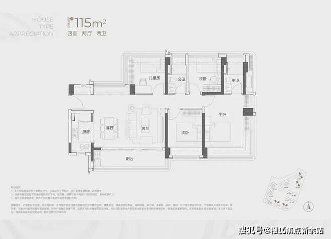 竖庭格局,西南向,基本居住功能与建面约108-110㎡4房2卫一致,但格局不一样,从目前公布的户型图上看,主要是主卧空间有了更大的提升,比如可以放更大一点的衣柜。但从位置上看,它所在的楼栋更靠近主干道,会有噪音影响。