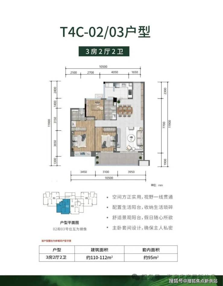 -全明户型,方正实用、公摊低,大主卧、超大景观阳台设计