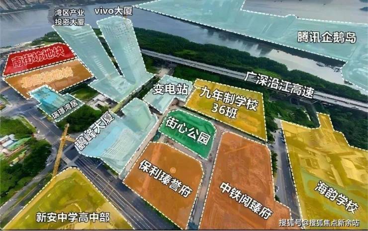 高规格公共配套:深圳创新创意设计学院、大型商业综合体(如壹方城、欢乐港湾)、优质学校(如宝安中学集团外国语学校、海韵学校等)、三甲医院(南方医科大学深圳医院)等一应俱全。