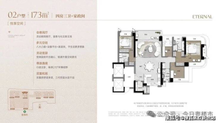 :朝北可观市民中心及莲花山景观,配备环幕尊奢主卧、独立衣帽间及三卫浴,双电梯独立入户设计保障了私密性,满足多代同堂或高端社交需求。