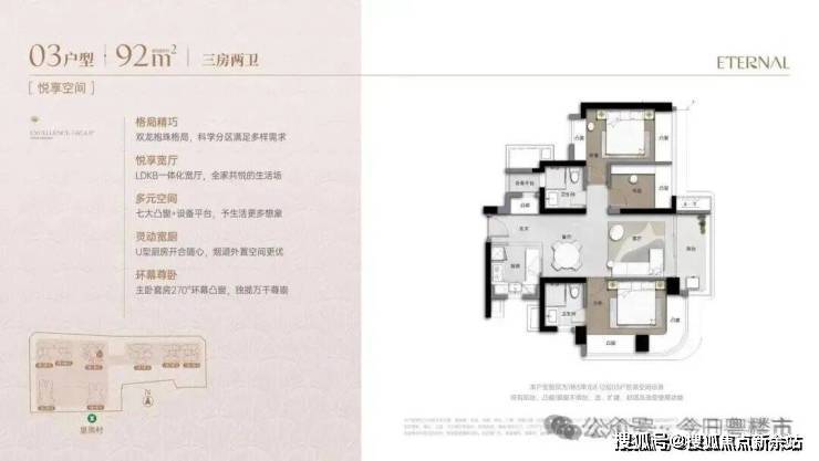 92㎡三房两厅:创新设计,适配年轻客群或小家庭,空间布局紧凑且功能齐全。