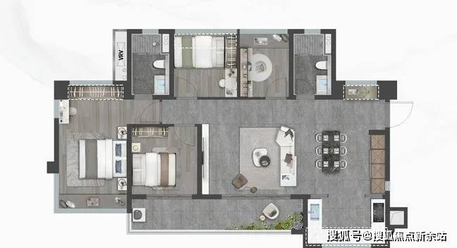 奢享人居:80㎡户型1.9卫概念植入,89㎡户型主卧独立衣帽间设计,全敞餐厨空间LDK一体化,提升奢享空间;120㎡户型14.7m超长全南采光,主卧270°环绕式观景,中西双厨概念,打造无界奢宅