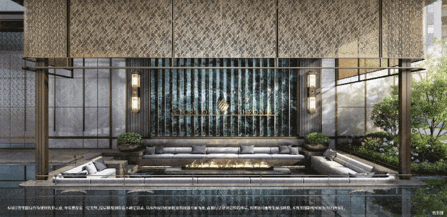 精奢园林:对标华尔道夫酒店精奢景观,设计泳池底部定制艺术瓷砖大面铺装御湖境水纹,以泳池水景为据点围合,一廊五境布局畔水归家,水系交汇实现引湖入园,五重叠景引画入境,封藏四季园林美学。
