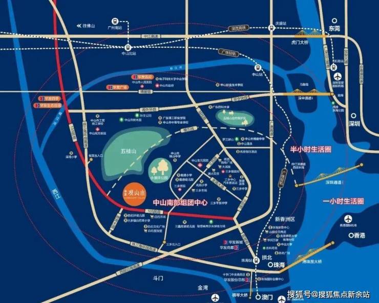 1、港珠澳后花园:华发观山水傲居湾区枢纽芯位——中山南部组团主中心(名称来源中山市南部组团发展规划公示),多维交通路网接驳,邻珠澳通港深,享有“港珠澳后花园”美誉。让您锐意驰骋湾区繁华同时,又能轻松归享湖山静谧闲逸,邂逅生活的本真。