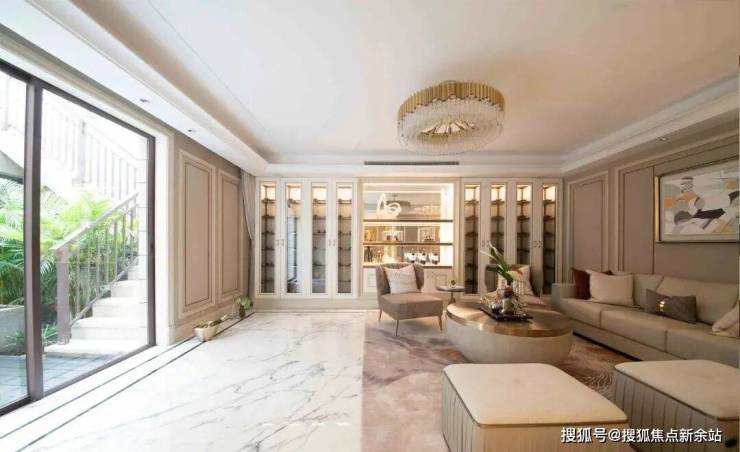 310㎡灵动空间:6.8米挑高客厅、星空露台、下沉式庭院,地下室可改酒窖/影音室,满足塔尖人群私密性与尊贵感;
