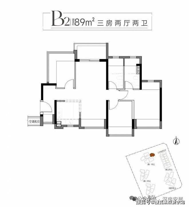 89m²的3房2厅2卫,B2户型,设计的是竖厅南北通透格局,进门入户玄关,客餐厅分离设计,五开间朝南,主卧南北双飘窗,次卧270°无柱飘窗,U型厨房,卫生间干湿分离,得房率95-101%(包含赠送),阳台主朝西北向。光明新房市场少有的89平竖厅南北通户型