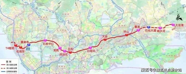 深大城际:该线路预计2026年开通,起自坪山聚龙站,终至宝安T4枢纽,线路全长约 69.2 km,线路设计速度为 160 km/h。