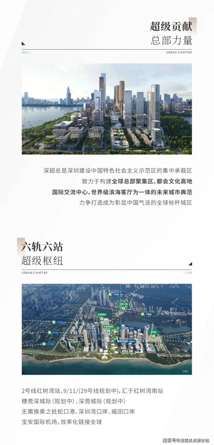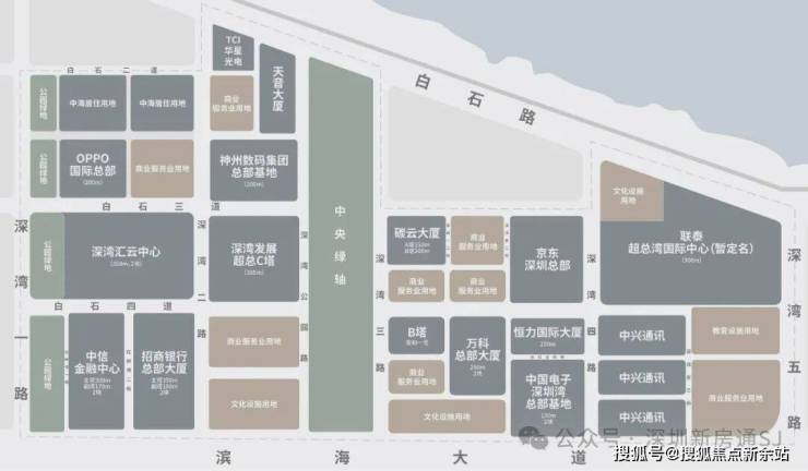 深圳湾超级总部基地(简称深超总)由政府亲力运营,须是世界500强、中国200强的企业方可入驻。截至目前,确定入驻的企业总部已达16 家,其中多家已破土动工或封顶,预计2027年整体投入运营。