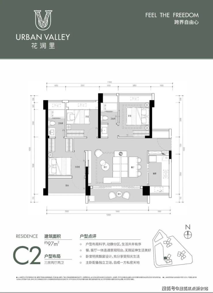 动静分区+U型厨房+分离式卫生间设计,功能科学合理,观景阳台更加阔绰。