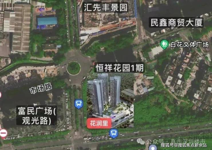 项目位于光明街道观光路北面富民大道路东面(与龙华观澜一路之隔),推广名为:《花润里》原白花社区征地返还用地地块二,规划总建筑面积8.25万㎡,共建设3栋32层住宅、1栋4层幼儿园、1栋4层商业裙房以及社区健康服务中心、物业用房及地下室等。是集住宅、商业、社康、老年日间照料中心等于一体的综合体建筑。