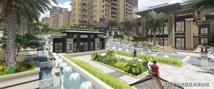 项目以东南亚风格为蓝本,层层递进的水系景观,从入口的叠水景观,到拾阶而上的汀步水景,再到中央泳池。