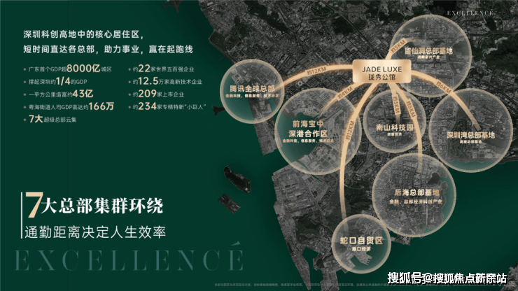 珑秀公馆所在,为南山区同乐片区。南山区作为全球科创高地之一,拥有腾讯、顺丰、中国电子等3个“世界500强”企业,及大疆、鹏瑞等众多全球科创“链主”级企业,经济规模独占鳌头。
