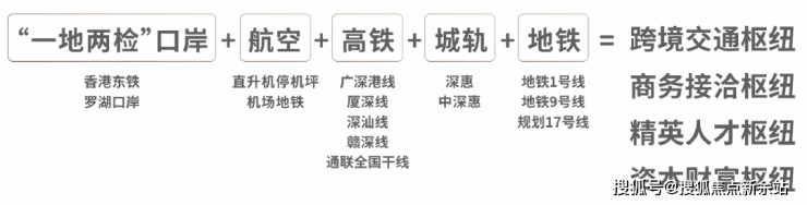 【大中华环球金融中心】紧贴罗湖口岸超级综合轨道交通枢纽,枢纽集铁路、城际、城轨、地铁、口岸于一体,搭配大中华环球金融中心停机坪,实现港深双城半小时生活圈,大湾区2小时商务圈。无缝连接香港商流、客流、人才、资本,多重利好叠加于此,实现片区腾飞。