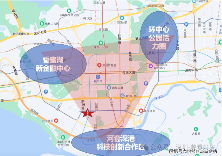 最新"十四五"规划中,福田定位湾区总部经济核心区,并聚焦河套深港科技创新合作区、香蜜湖新金融中心、环中心公园活力圈"三大新引擎",项目位于三大引擎的三角地带核心位置,坐拥众多规划和资源。