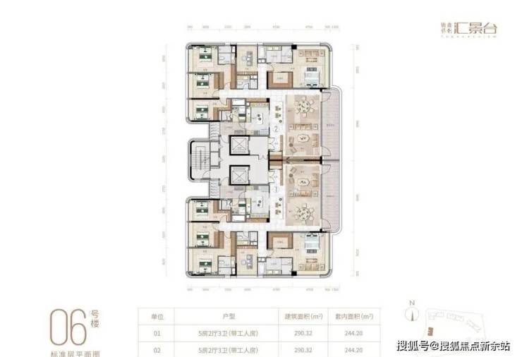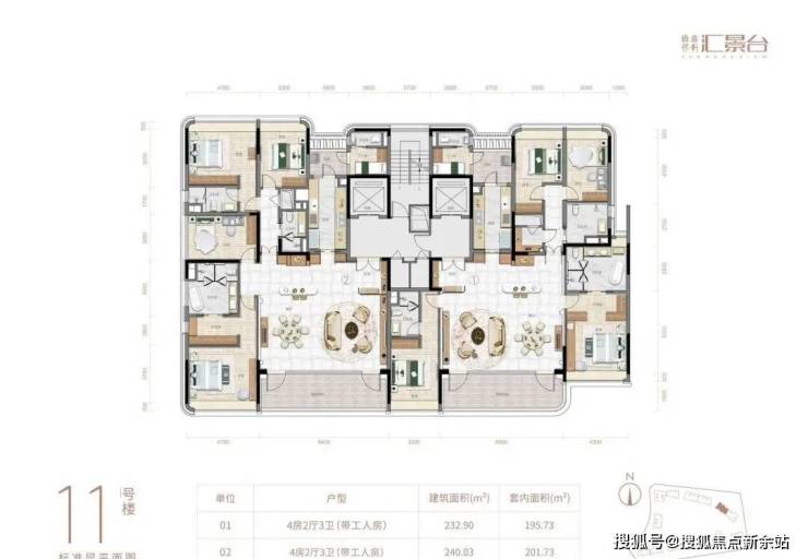项目由14栋12层小高层组成,产品涵盖123-352㎡三至五房,共8类户型,户型实用率约82-84%