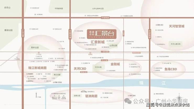 位居天河城央,南近珠江新城,北望火炉山,东望科韵路,西接汇景新城社区两公里景观中轴带,邻近科学城、智慧城、广东奥林匹克体育中心;广园快速、华南快速、深海高速环绕;