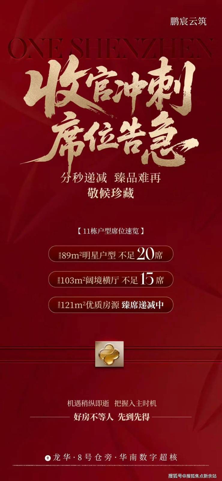 价格方面极具竞争力,收官 11 栋折后均价约5.24 万 /㎡,折后单价 4.75 万 /㎡起,总价 425 万起即可入主龙华主城。项目自 2024 年底入市以来八开八捷,2026 年一季度稳居龙华销冠,以硬核实力印证市场认可。凭借双国企稳健开发、纯居纯粹圈层、新规高拓户型、主城便捷交通与高性价比,中建鹏宸云筑成为深圳刚需、刚改闭眼入的优质选择,兼具居住价值与成长潜力。
