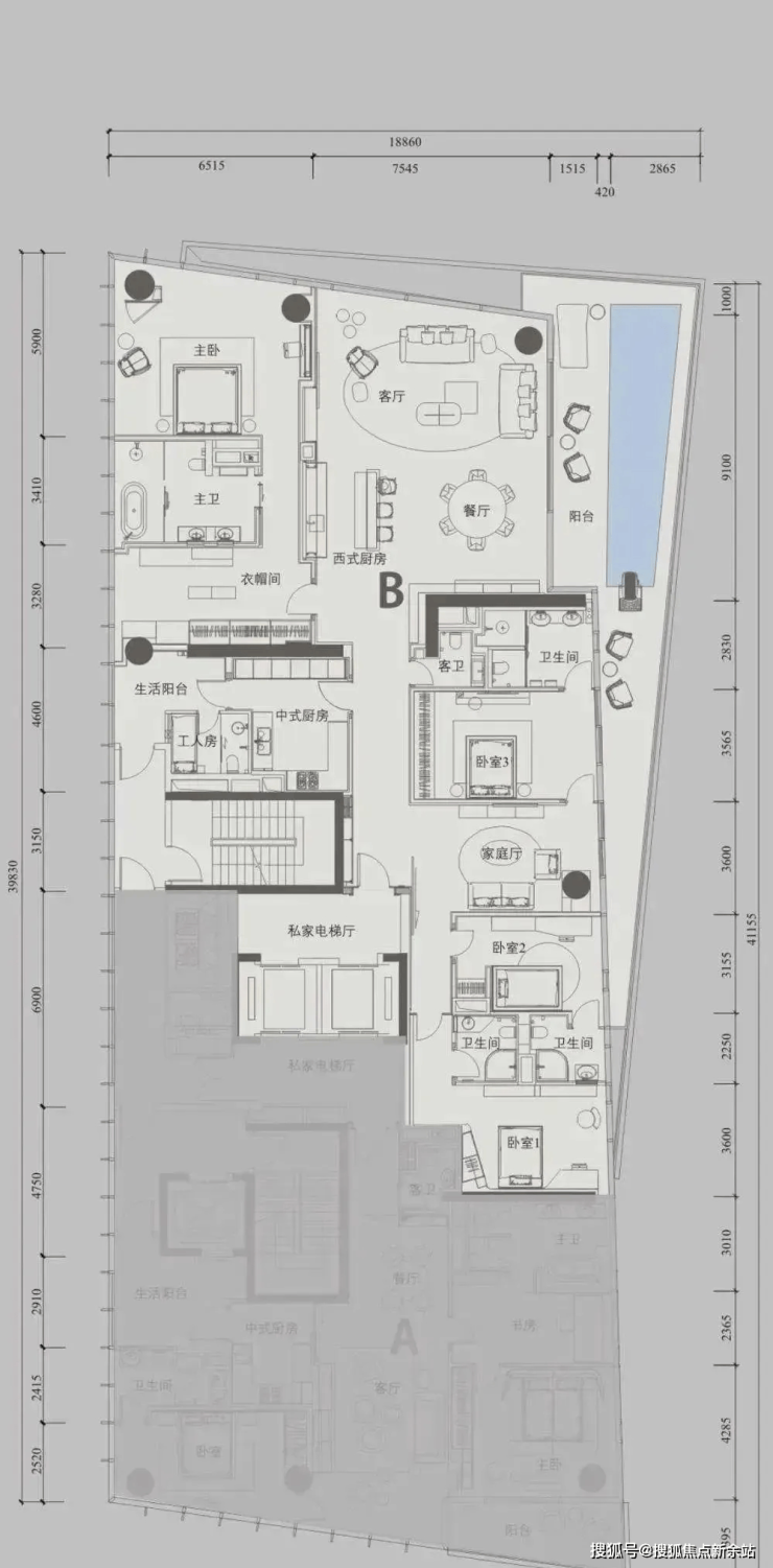 T8栋顶层特色单位859平(毛坯,使用率近2000平)