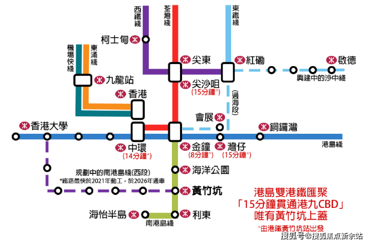 另外南港岛线(西段)在香港大学为起点,黄竹坑为终点,将来黄竹坑地铁站是两条地铁交汇处,不但增加了人流,亦方便黄竹坑居民前往香港仔等地。