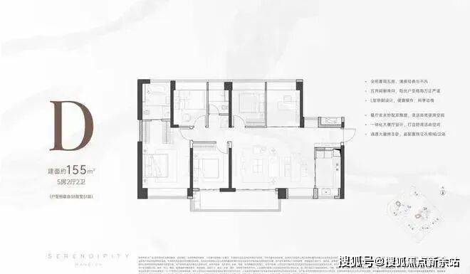 建面约155㎡全明奢阔五房震撼发售,藏品级宽绰大户,一体化大横厅设计,尽揽一方山海景致,以宽奢尺度延展家庭想象,满足三代同堂居住需求。