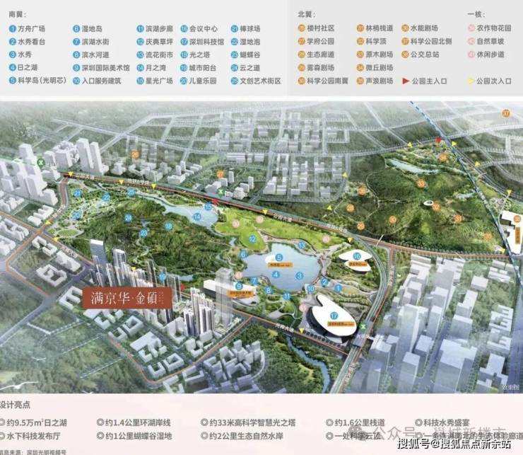 满京华·金硕项目直面占地约208万㎡的科学公园(在建中),近享深圳国际美术馆(暂定名、在建中)、深圳科学技术馆、科学城体育中心(在建中)、会议中心(规划中)等市政级文体配套;还坐拥狮山公园(规划中)、约9.4万㎡的东周文化公园,约10万㎡的开明公园,约56万㎡的新城公园等丰富绿色生态资源。