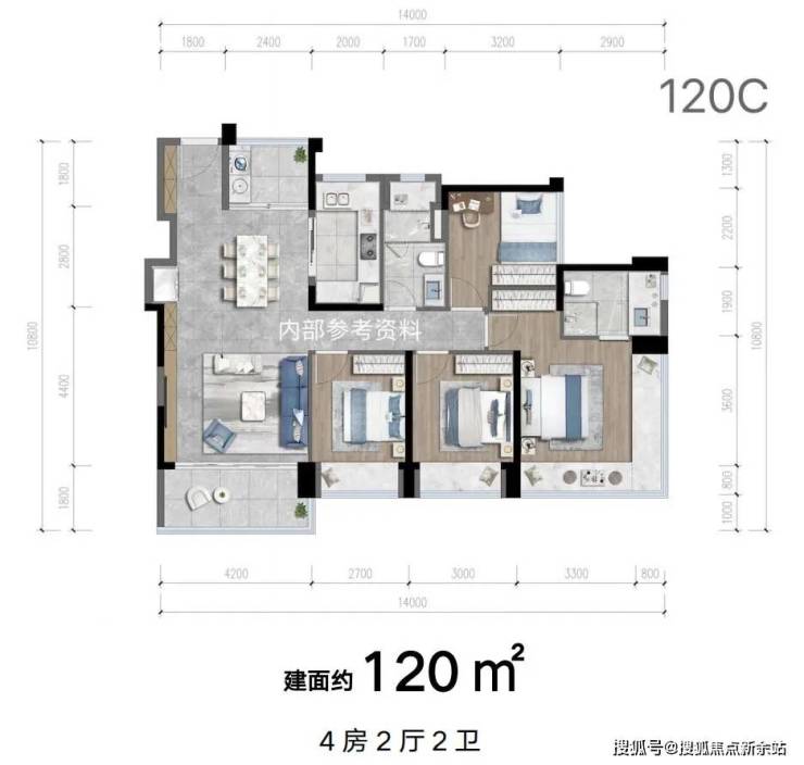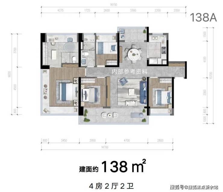 建面约 128㎡ 四房两厅两卫