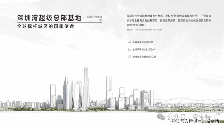 - 区域规划:深超总规划总开发建筑面积约520万㎡,定位为“全球总部聚集区、都会文化高地、国际交流中心、世界级滨海客厅”,未来将成为“全球资本锚定未来的核心坐标”;