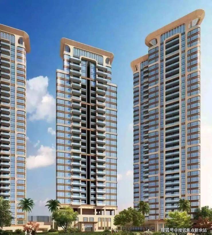 住宅及商业街铺采用新中式建筑风格:墙面是米黄色石材、金色铝板、槽钢、百叶以及玻璃辅以光滑挺立的鉴向线条,在细部处理上注意比例尺度的推敲;材质的虚实对比,色彩的和谐搭配,让建筑极富时代特征。