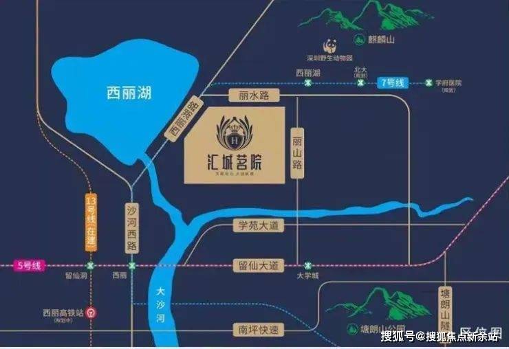 汇城茗院位于深圳市南山区西丽湖路与丽水路交汇处,地处西丽湖国际科教城核心区域。这一区域不仅自然环境优越,南临沙河支流,北眺西丽水库,还拥有丰富的教育资源,如清华大学研究生院、北京大学研究生院、南方科技大学等高等学府云集,为业主子女提供了优质的教育环境。此外,项目紧邻地铁7号线西丽湖站,交通便利,可快速到达市区多个重要繁华区域。