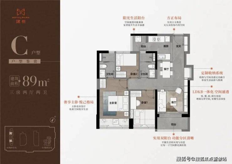 89平三房,总价525万起,有ABCDE户型,174套