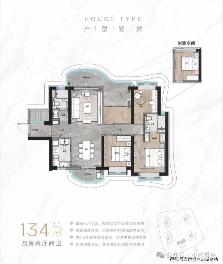 目前楼王产品璇湾壹号面积段为184-255㎡的4至5房,瞰江面最高18.3米,最高270°观景面,临江约100米,户型图如下: