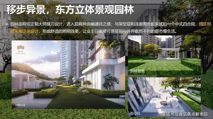 坐拥醉美中轴园林景观视野、平台水景、特色门庭、泛光照明,一步异景形成楼王私享景观。