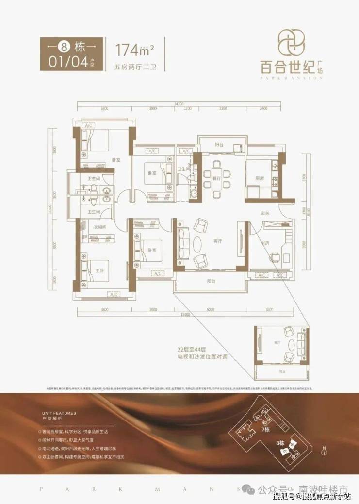 百合世纪广场的户型设计匠心独运,奢阔三至五居户型,满足人们对家的美好向往和不同需求;全户型采光通风俱佳,方正布局尺度阔绰,极大提升生活舒适度;户户双阳台、瞰景飘窗设计,宽幕观景视野,感受慢时光的惬意生活。