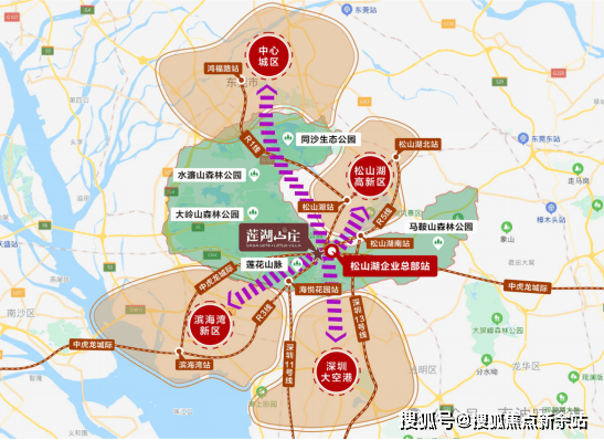 项目堪称天选之子,离尘而不离城,位于滨海湾新区和松山湖高新区的黄金中轴。4地铁+1城轨+5高速的高配置,贯通深圳和东莞南北向的交通路网,全面连接整个大湾区。