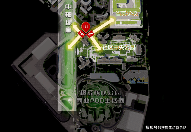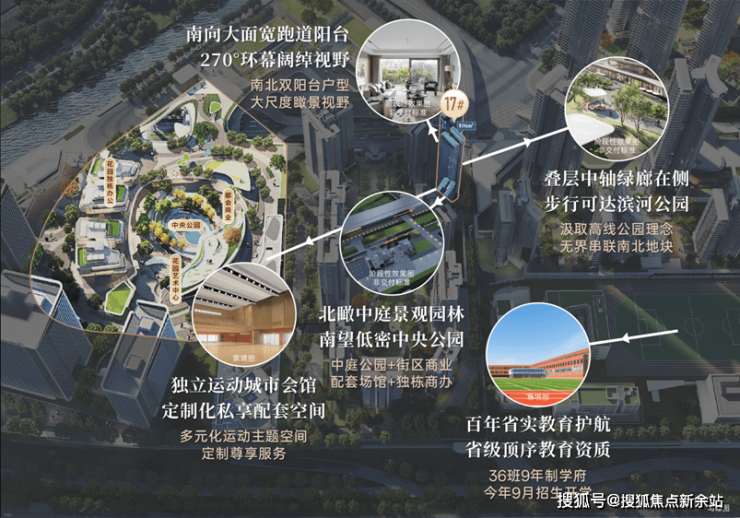 西瞰中轴绿廊、南望中央园林、东望百年省实配套,景观视野丰富多样