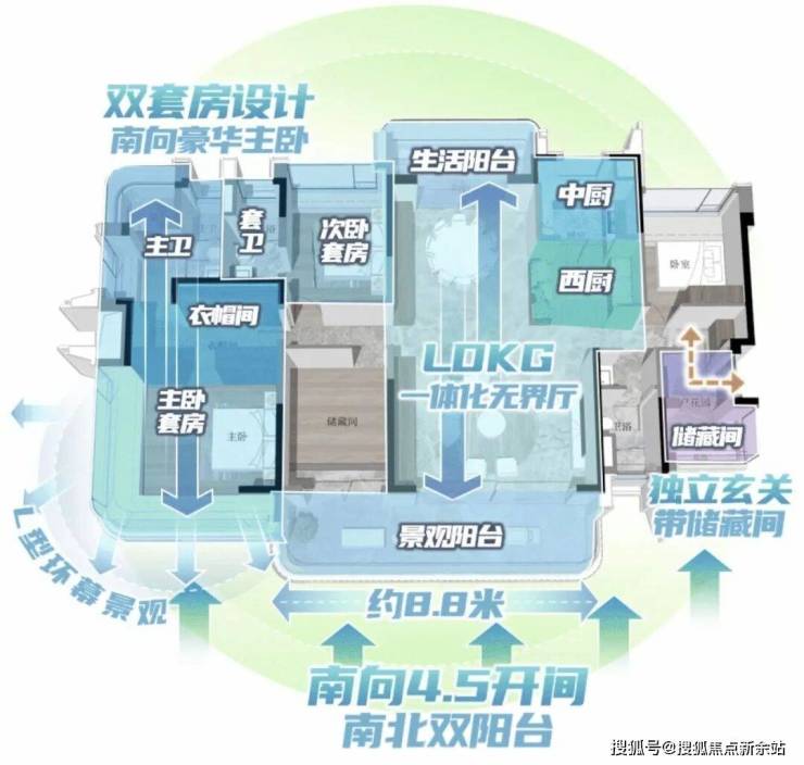 南北双阳台对流,约9米超长南阳台;