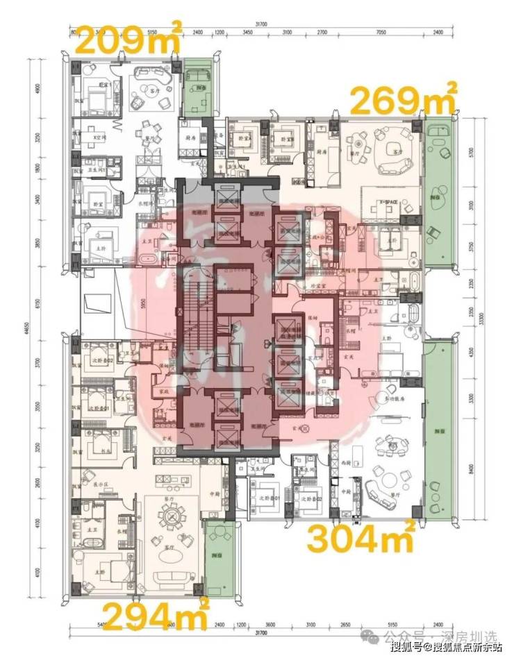 项目产品约: 209-269-295-305-375-403-500-700-1180平纯住宅大平层